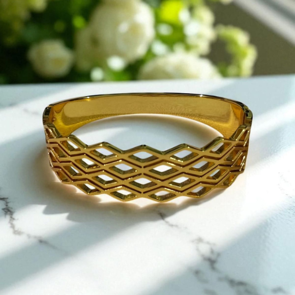 Gold plated geometric shape anti tarnish bracelet