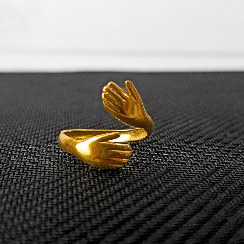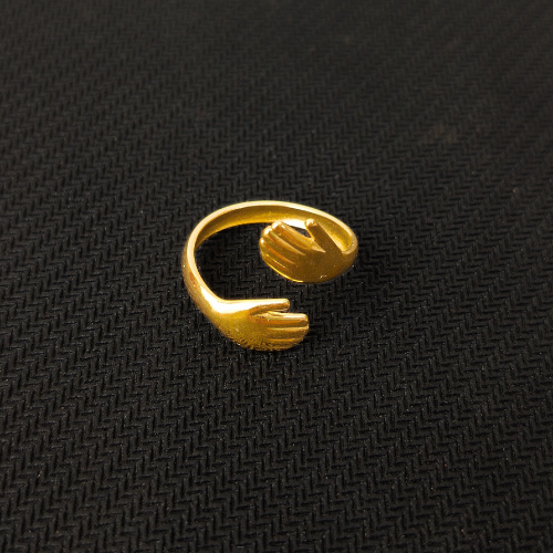 Symbolize love and connection with this exquisite Hug Ring. Crafted in a polished gold tone, the band forms two hands that gently wrap around your finger in a warm embrace. This unique and meaningful piece is a perfect gift for someone special or a charming addition to your own collection.