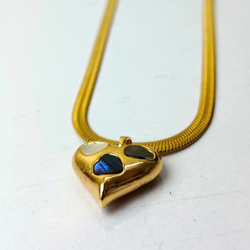 - Pendant: Puffed heart with a mosaic of mother-of-pearl and abalone