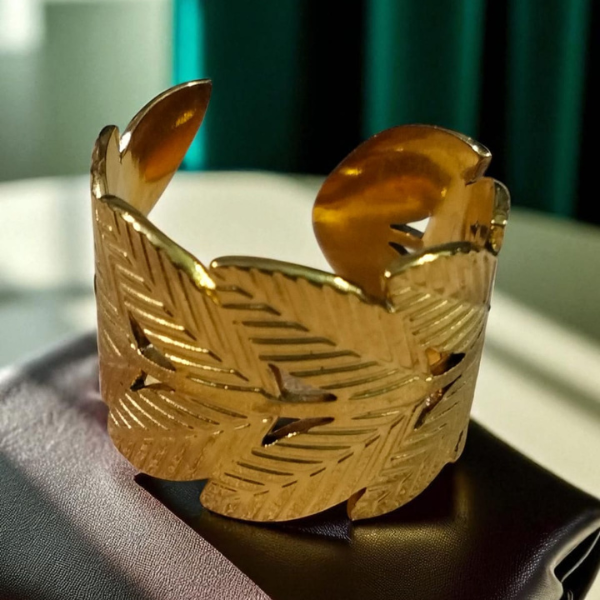 Embrace the beauty of nature with this elegant and adjustable leaf ring. The gold-toned band is designed with delicate, overlapping leaves that gracefully wrap around your finger. Its cuff style ensures a comfortable fit for all sizes, making it a versatile and stylish choice for any occasion.