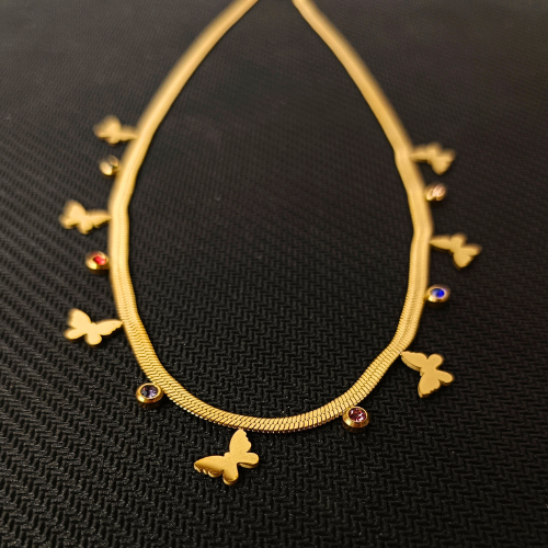 - Design: Multiple butterfly charms interspersed with colorful cubic zirconia